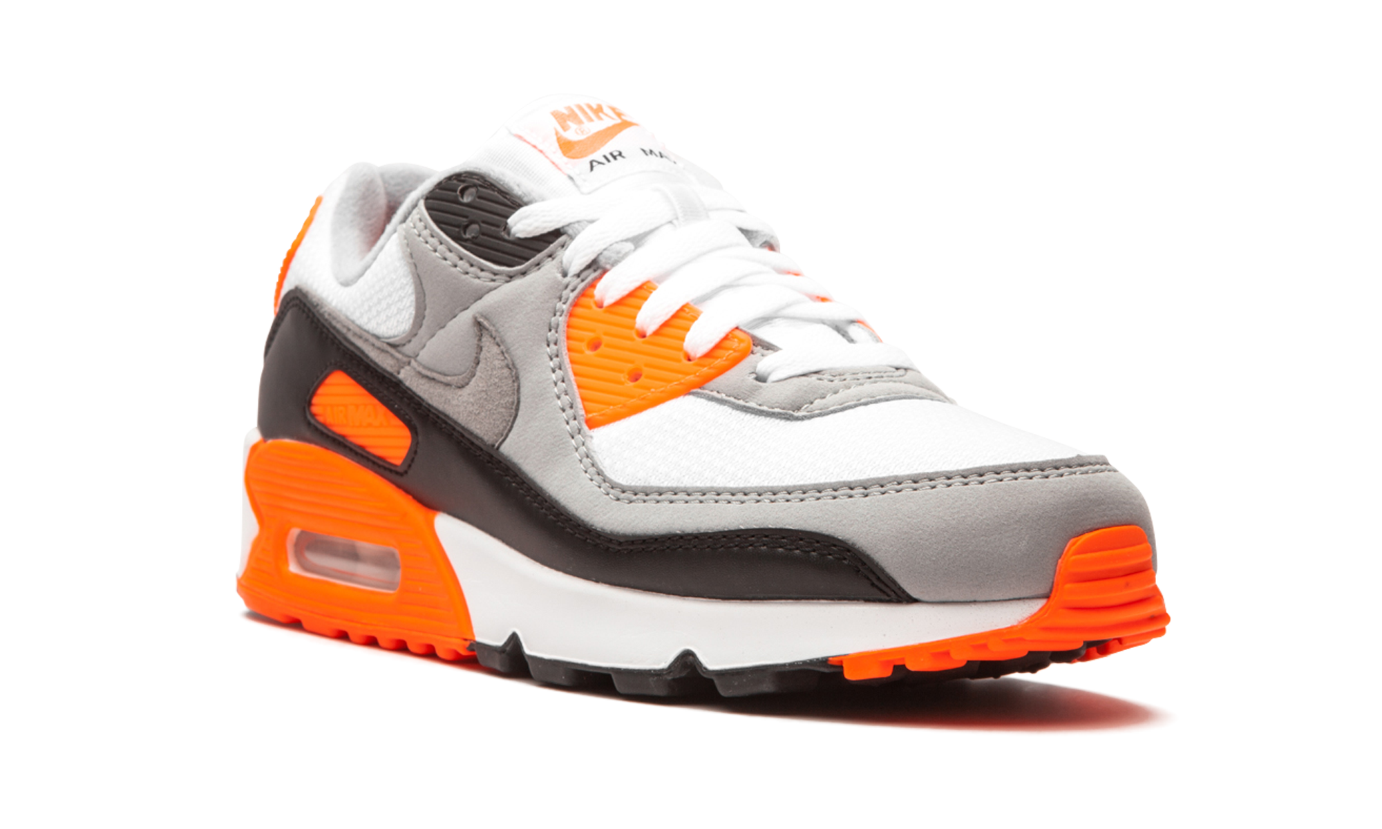 The Nike Air Max 90 “Total Orange” is a new colorway of the performance runner that celebrates the model’s 30-year anniversary. The “Total Orange” edition is one of several back-to-original Air Max 90s that were released in 2020. A more streamlined shape and use of premium materials differentiates the “Total Orange” from other Air Max 90s. An ample amount of the vivid orange hue is applied throughout the design, including on the eyelets, Air Max branding window, heel tab, and panel that surrounds the visible Air unit in the sole. The black mudguard is contrasted by light grey leather accenting on the mid-panel and toe cap. Total Orange